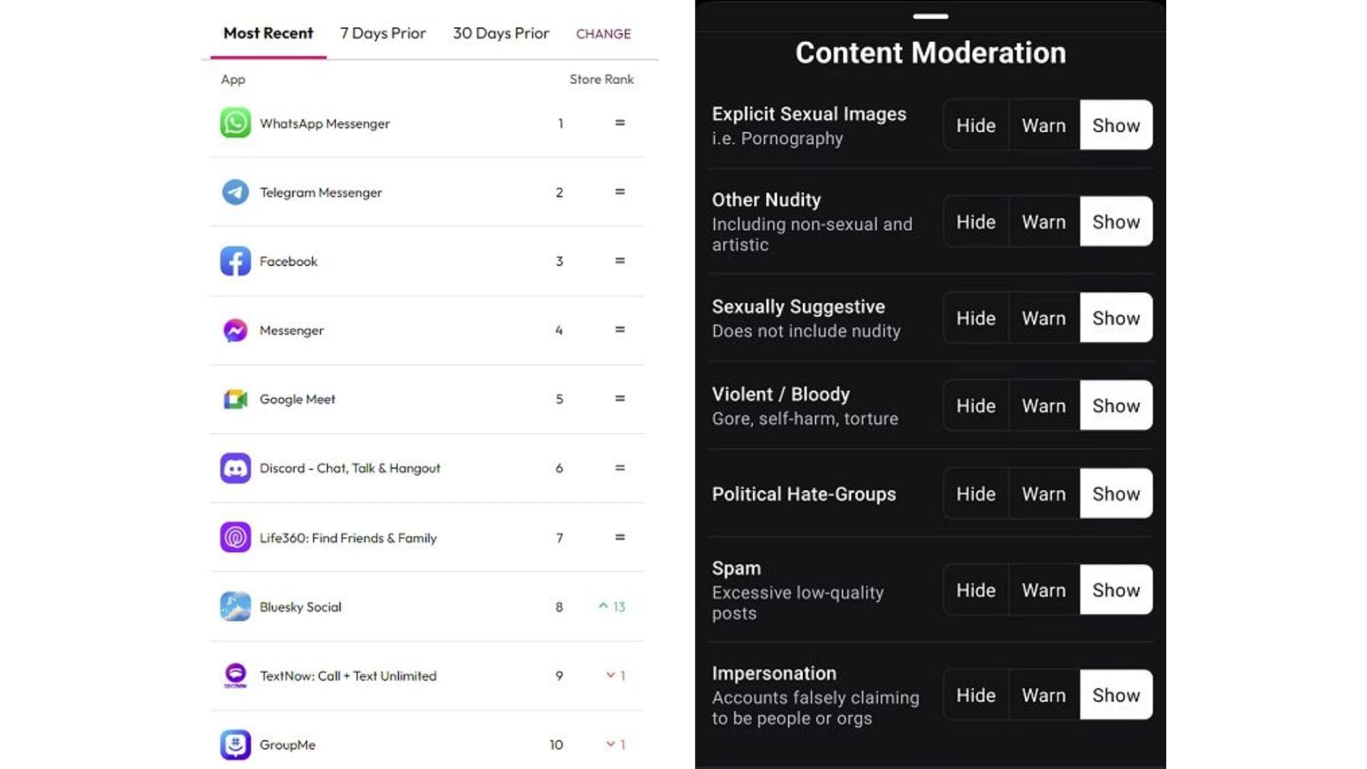 Recentemente, apesar de ainda estar na versão beta e, por enquanto, só aceitar usuários por meio de convite, a Bluesky chegou ao oitavo aplicativo mais baixado na categoria de redes sociais no final de abril, segundo dados da data.ai.