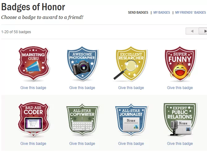 A interação é tão forte, todas com possibilidade de divulgação, que você pode selecionar um dos diversos badges disponíveis para presentear um amigo. Também é possível fazer um pedido de badge para sua lista, publicando no mural, para ganhar mais itens de coleção. Uma brincadeira simples, viciante para muitos, mas que gera uma baita exposição de marca.