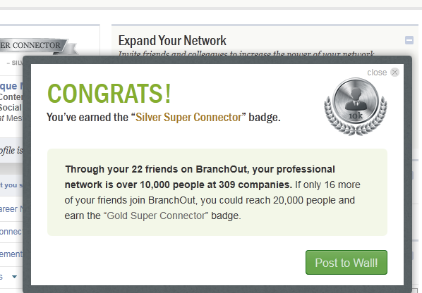 Os espertos do BranchOut sabem disso e colocaram o sistema dentro de sua rede. E, pra variar (já está ficando repetitivo), cada conquista pode ser divulgada em seu Mural: