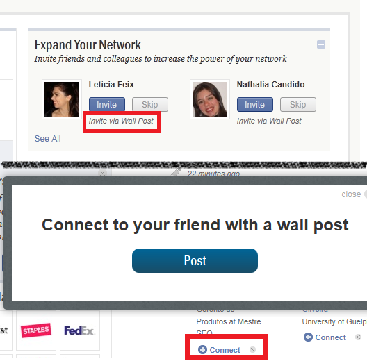 Se a bola de neve não se formar por aí, ela certamente vai crescer por conta das sugestões de pessoas que o BranchOut te dá para realizar suas primeiras conexões. Ele também te aponta amigos do perfil que ainda não entraram na rede, para que você envie o convite.
