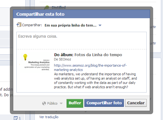 Já no Facebook, quando você clica em um post para compartilhá-lo, o botão aparece: