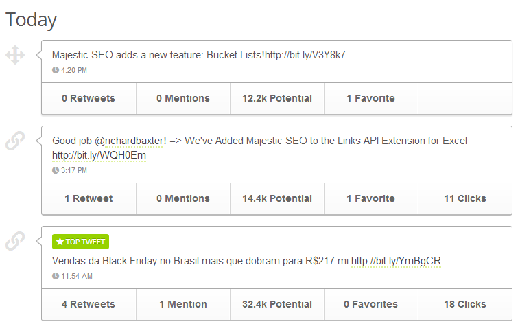 Eu estava usando o Timely que deixou de existir no final de 2012. Era uma ferramenta gratuita. A própria Timely, em nota, passou a recomendar os serviços da Buffer. Aprovado. Serviço muito bom!