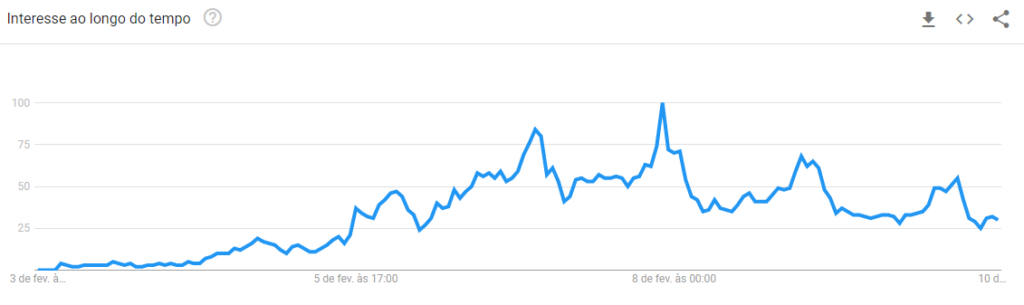 A busca pela rede social cresceu bastante neste início de fevereiro, como podemos notar no gráfico do Google Trends: