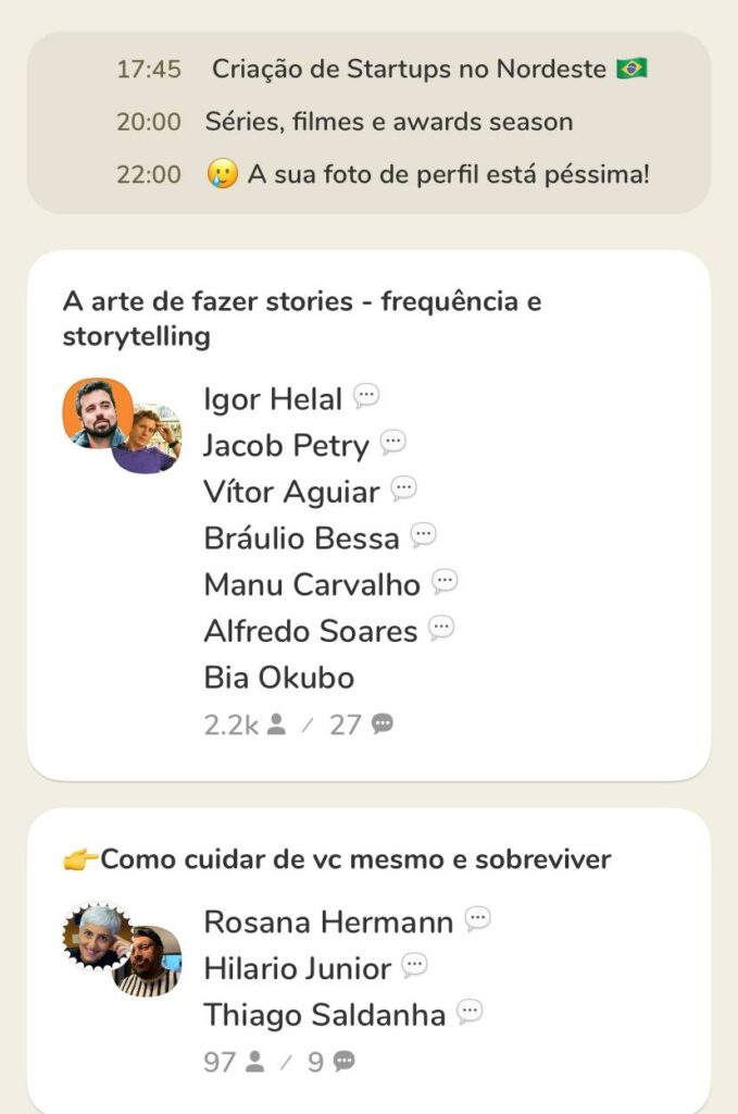 Também é possível agendar o horário para que as salas comecem a funcionar, ajudando as pessoas a se programarem para participar no momento em que estiverem livres.