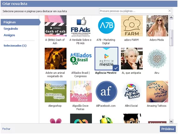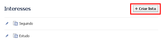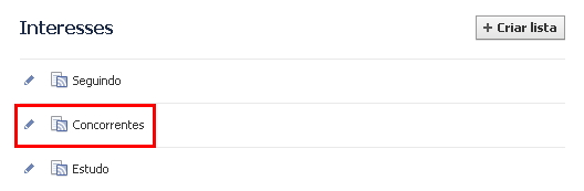 Acompanhe cada uma das páginas dos seus concorrentes dentro do Facebook criando lista de interesses no seu perfil. Para isso, basta ir em “Interesses” no menu do canto esquerdo do seu perfil e depois em “Criar lista”.