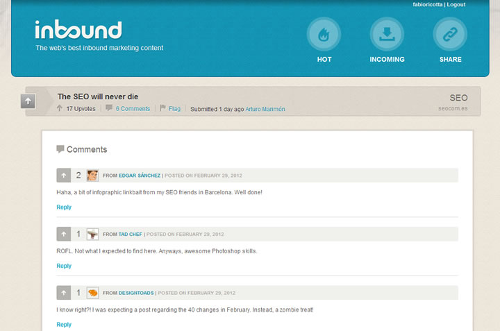 O interessante ao meu ver é que muitos profissionais e blogueiros da área de SEO, Links Patrocinados, Analytics e Social Media, estão notando que o Inbound.org é uma bela fonte de referência de tráfego qualificado e até mesmo, muitos, como eu, estão utilizando ele como fonte de estudo e descoberta de novos conteúdos de qualidade.