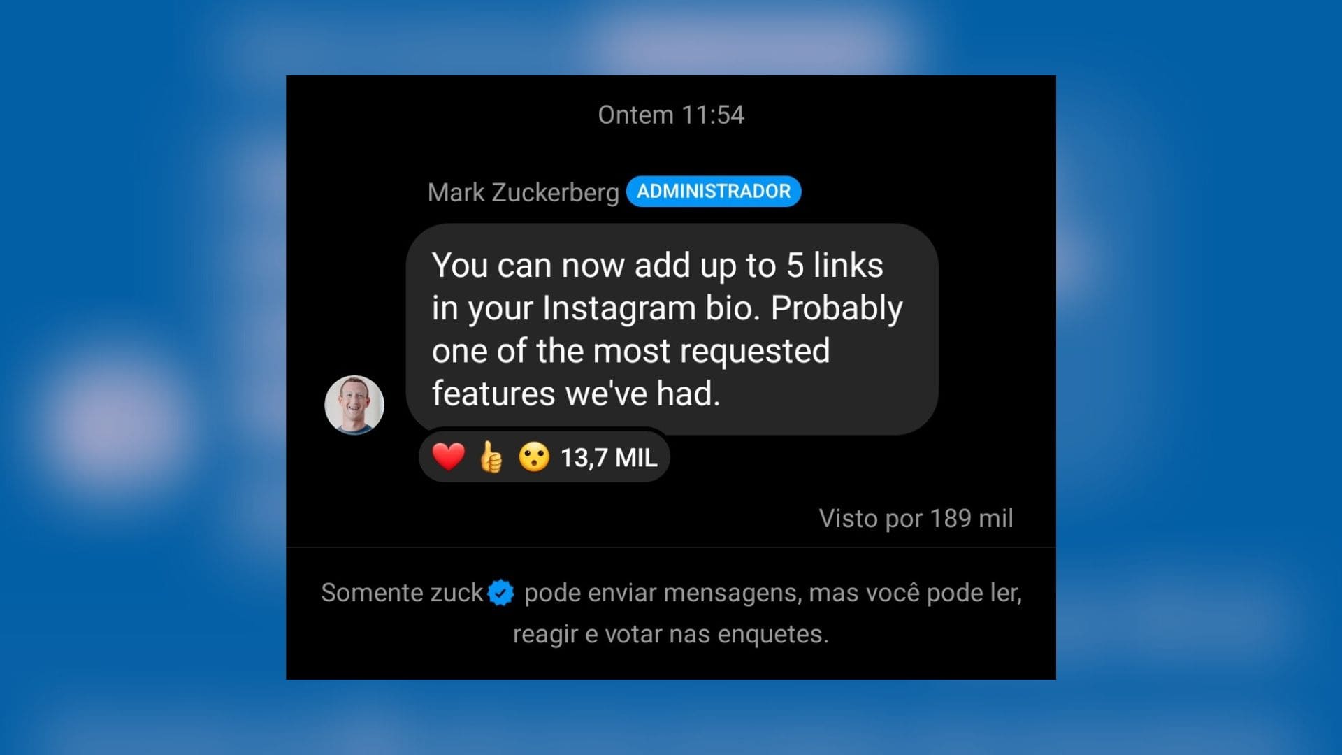 A atualização foi compartilhada pelo CEO da Meta, Mark Zuckerberg, em seu canal do Instagram no dia 18 de abril: