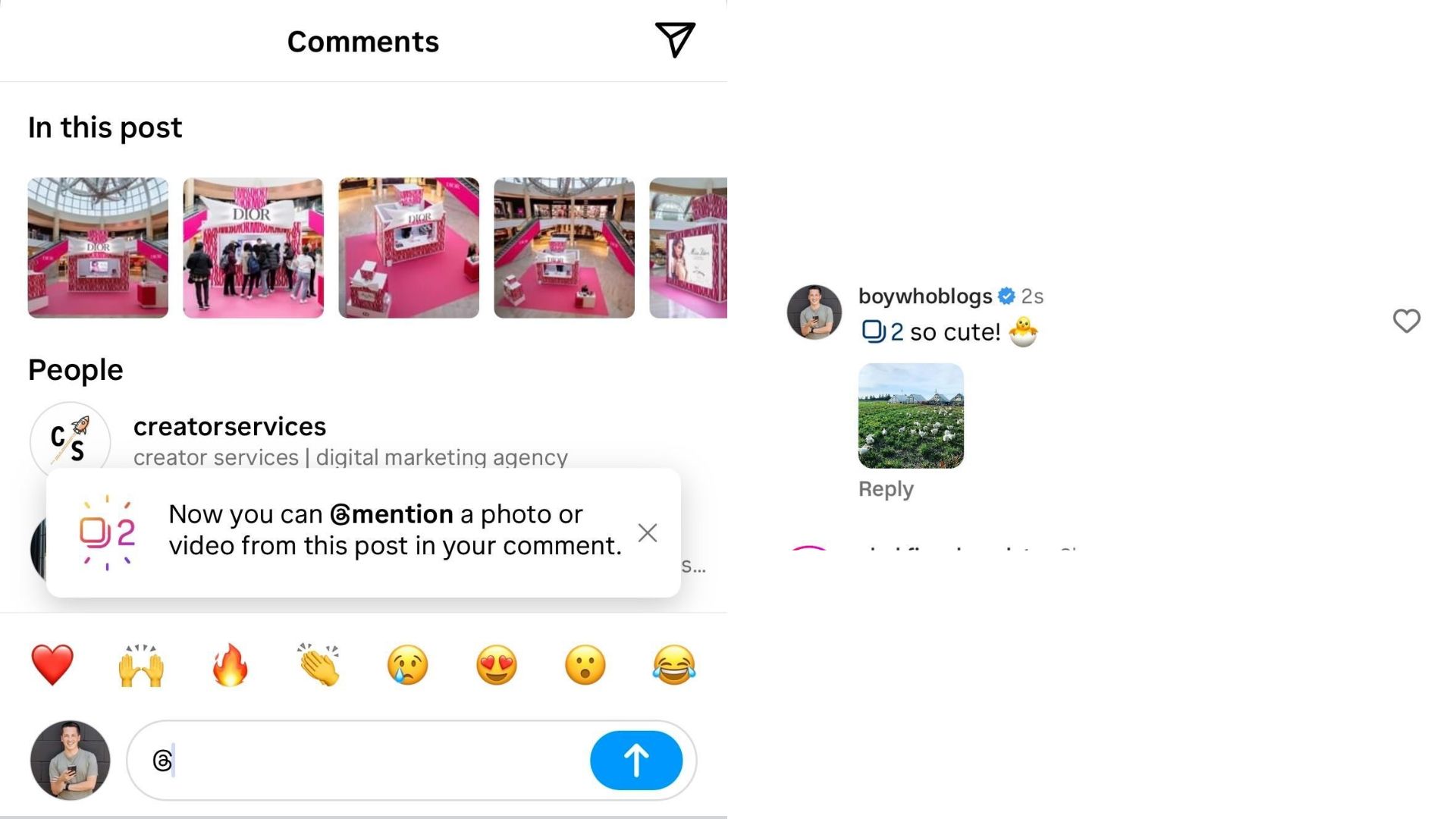 Basicamente, se um usuário quiser comentar sobre o “card 2” do seu conteúdo, ele poderia escrever “@2” e o comentário em questão. Dessa forma, o comentário seria direcionado para o frame específico e incluiria uma miniatura da publicação.