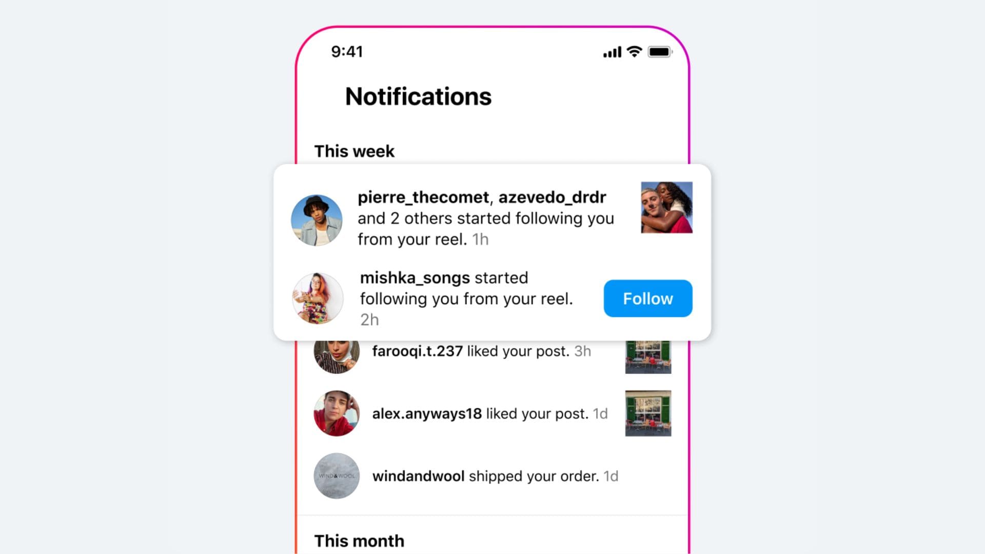 Além das novas métricas, outra novidade anunciada pela Meta é que o Instagram mostrará uma notificação diferente sempre que o seu perfil receber um novo seguidor após assistir a um vídeo Reels.