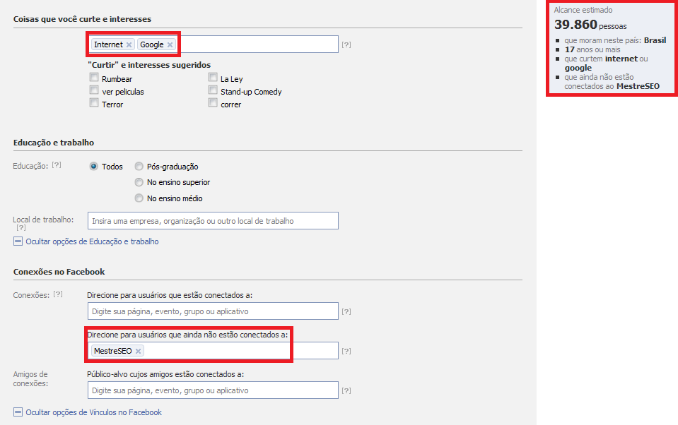 Mas mesmo assim acredito que é uma boa fazer um teste. O legal é que o Facebook te mostra um número aproximado de pessoas que você vai atingir com o anúncio (como falei no texto). Assim, dá pra saber se vale a pena investir dependendo do retorno de pessoas que verão o Ads
