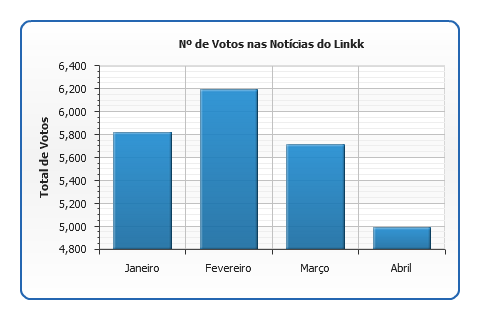 Registramos mais uma queda no volume total de notícias do LinkK: foram 222 notícias. Março (248) já vinha de uma queda em relação à fevereiro (275). Interessante que a notícia da Vooz sobre o prêmio mundial que o fotógrafo brasileiro ganhou continuou entre as 5 mais votadas de um mês para o outro: em março teve 40 votos, em abril, subiu para 42. Será uma baixa entrada de notícias? Um alto filtro para notícias? Ou outro fator manteve a notícia por ali?