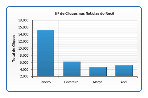 E esse alto volume de notícias mensal ainda recebe muitos cliques. A mais clicada em abril chegou a marca de 20.304 cliques. E o que impressiona é que abril é também o mês com menor volume total de cliques desde o começo do ano, sendo em janeiro a pior marca e, ainda assim, é praticamente o dobro do total de abril. Dados nos gráficos abaixo.