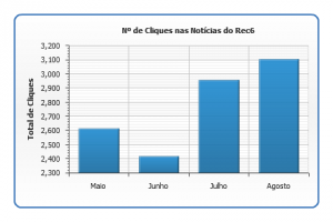 Esse aumento de 25% de notícias em relação a julho (5.108), também se refletiu no volume de cliques, com aumento de 29% de agosto em relação a julho.