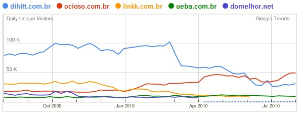 Vamos com calma, Anderson rs. Ao passo que o diHiTT teve a queda de visitas únicas, bem como Linkk e doMelhor, o Ocioso vem tendo um aumento regular de visitas.