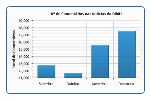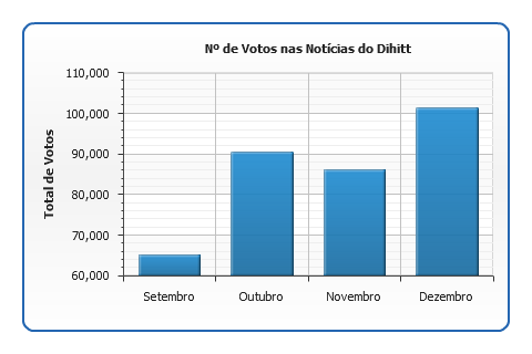 O ano de 2009 terminou com o diHiTT liderando as redes “digg-like” brasileiras com um total de 1491 artigos e notícias. Notamos que, assim como no mês de Novembro, as notícias mais populares obtiveram uma enorme quantidade de votos, onde notícia mais popular obteve 106 votos. Uma curiosidade que notamos no dia-a-dia do diHiTT é que as notícias vão a popular com, em média, 35 votos. A grande estratégia é promover um conteúdo de qualidade e ter boas conexões na rede social para conseguir promover a sua notícia rapidamente.