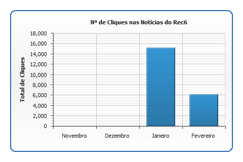 Após a mudança da plataforma em janeiro, fevereiro não foi um mês de muita movimentação no novo Rec6, apenas 112 notícias diferentes passaram pela home do site. Em janeiro foram 2226. Por outro lado, a notícia de mais clicks teve praticamente o dobro de clicks: 1272 em fevereiro, contra 626 em janeiro.