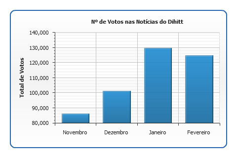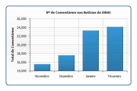 Em fevereiro, o diHiTT sozinho angariou mais notícias e artigos em sua página inicial do que seus concorrentes somados: 1362 notícias contra 1187 de Rec6, Linkk e Uêba; Em relação a janeiro, que teve 1510 notícias, houve uma queda na quantidade total de entradas, enquanto a notícia mais votada teve mais votos (3 a mais) e a notícia mais comentada teve mais que o dobro de comentários (65 em janeiro, contra 168 em fevereiro). A comunidade continua muito ativa no agregador.