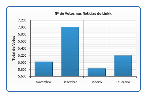 Com 275 notícias diferentes na página inicial, o LinkK aumentou a diversidade em relação à janeiro (259 notícias), mas ainda não passou a marca de 300 notícias (dezembro). A quantidade de votos em suas notícias manteve o valor regular, cerca de 30 votos. Interessante notar que, diferente de Rec6 e diHiTT, o LinkK não teve “carnaval” como uma das palavras mais frequentes nos títulos de suas notícias, mas “seo” se manteve popular, desde janeiro.