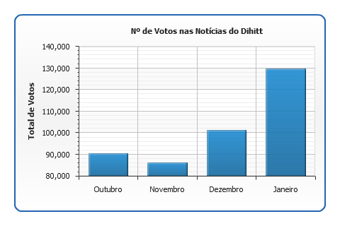 O diHiTT começa 2010 seguindo com o crescimento que vinha obtendo nos últimos meses: alcançou 1510 notícias diferentes na página inicial. A notícia mais votada em janeiro alcançou 123 votos, enquanto em dezembro, a maior quantidade de votos foi 106. Isso demonstra o crescimento da rede, inclusive com aumento da participação dos usuários, que colaboraram, também, com mais comentários.