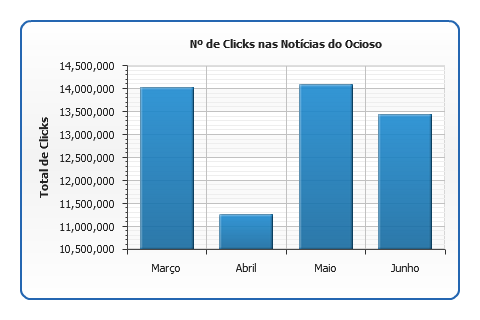 O Ocioso mais uma vez foi o responsável por mais da metade do volume de notícias reportadas neste artigo. Em maio, a marca foi de 5.568, em junho, queda, 5.200 notícias diferentes. Além da baixa de 368 notícias, a queda no volume de cliques foi de 14 milhões para 13,5 milhões.