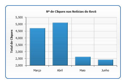 Com 46 notícias em junho, o Rec6 mantém o seu baixo volume de notícias, por outro lado, obteve 2 notícias a mais do que em maio (44). Apesar de não ter sofrido a contínua queda no volume de notícias, o Rec6 sofreu queda de cliques em suas notícias: 2.600 em maio para 2.400 em junho. Destaque para a notícia mais clicada do mês, sobre conteúdo adulto, a princípio, com o dobro de cliques do segundo colocado. Será este o público que está circulando por lá?