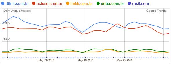 O Ocioso parece realmente a rede de maior crescimento e mais interessante para se ter notícias publicadas, mas o diHiTT continua sendo interessante apesar da queda, o volume de pessoas que passa por lá é alto, tornando-o interessante para aumentar a visibilidade de um site. Em termos de cliques em notícias, a ordem das redes sociais é: