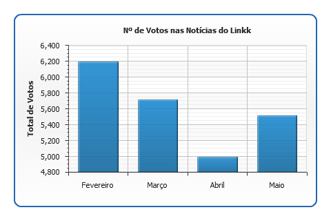 Em relação a abril (222), maio apresentou um aumento no número de notícias populares no LinkK, atingindo 240 notícias populares diferentes. Não bateu março (248), nem fevereiro (275), mas já é um começo de melhora para a rede de notícias. Os temas continuaram diversificados e informativos, e alcançaram muito mais votos: 3 vezes mais votos do que em abril. A copa do mundo parece que ainda não chegou por lá. Votos a parte, a entrada de notícias permanece dentro da média na rede.