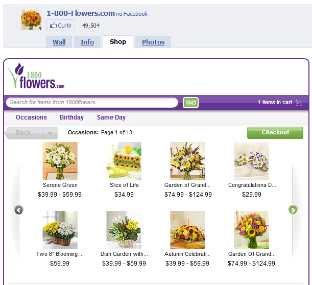 Já não é de hoje que comprar direto do Facebook é algo novo. No ano passado, a empresa norte-americana 1-800-FLOWERS investiu numa plataforma de e-commerce dentro de sua fan page. O conceito surgiu da discussão que, inclusive, tivemos no Curso: “as pessoas gostam de fazer as coisas num mesmo ambiente, sem ficar pulando de site em site” e, ciente da ascensão do Facebook, a empresa de flores aplicou com sucesso o conceito do e-commerce.