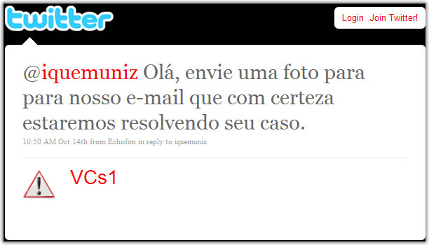 Logo após a resposta do twitter, que aconteceu cerca de 15 minutos após a minha reclamação, a empresa já analisou as fotos, reconheceu a falha e enviou outro novo para mim. Satisfeito, twittei em favor da empresa por conta do tratamento e certamente vou comprar lá de novo quando precisar!
