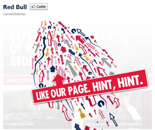 O legal deste app é que o segundo campo é destinado apenas ao conteúdo exclusivo aos fãs, ou seja, você pode criar duas peças idênticas, mas fazendo a primeira com um efeito que esconde a página ao fundo e com uma arte apontando para o botão Curtir. Só assim novos usuários poderão ver o conteúdo. Veja, por exemplo, a fan page da Red Bull: