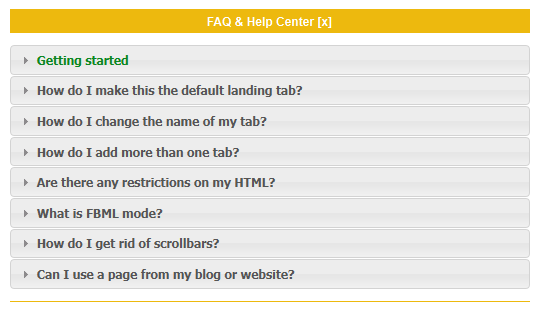 Dentro do aplicativo, há uma barra superior em amarelo que abre um pequeno FAQ. Ali é possível tirar algumas dúvidas comuns para facilitar o trabalho. Também há um link de acesso para a instalação de mais Static HTMLs em sua fan page. De acordo com o aplicativo, você pode acrescentar até 12 abas em sua página.