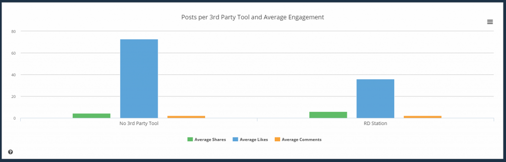 Com a disponibilidade da API do Facebook, várias empresas criam e gerenciam suas ferramentas que oferecem diversas interações junto à rede social. Uma delas é simplesmente publicar na timeline de uma página ou perfil. A SumoRank faz uma análise de cada ferramenta utilizada na publicação da página vs. uma postagem sem o uso de ferramentas. No caso da Mestre, usamos a RD Station para a programação de publicações