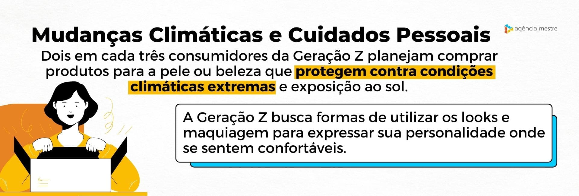 A princípio, esses dois tópicos podem parecer totalmente desconexos. No entanto, dois em cada três jovens da geração Z planejam comprar produtos de skincare (cuidados com a pele), para se proteger de doenças que podem ser causadas pela exposição ao sol e condições climáticas extremas.