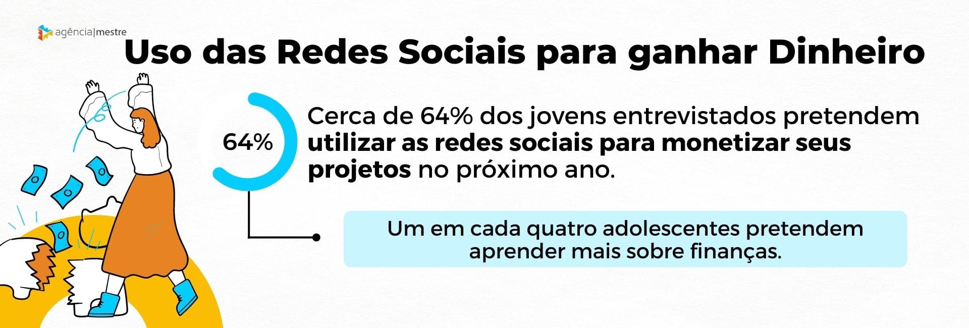 Para as empresas e personalidades digitais relacionadas ao universo financeiro, essa será a oportunidade para atrair um público mais jovem, visto que 85% estão interessados em aprender uma nova habilidade em 2023 e um em cada quatro adolescentes pretendem aprender mais sobre finanças.