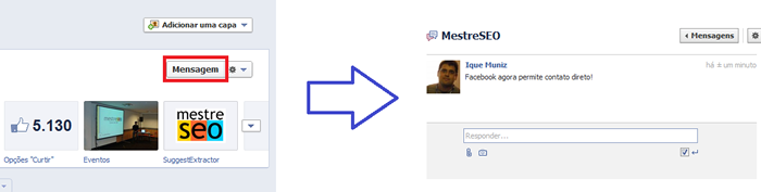 Um dos boatos já lançados foi implementado nesta nova alteração de timeline. É permitido agora entrar em contato direto com a marca através de mensagens privadas, desde que a empresa habilite a funcionalidade na sua fan page.