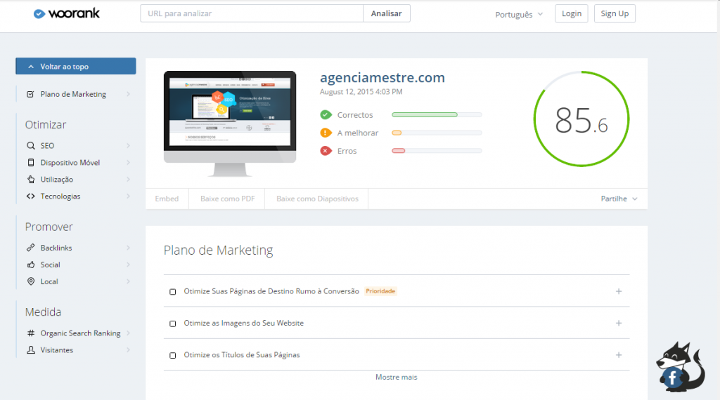 Talvez a mais conhecida dos profissionais de SEO do Brasil com quem converso, a WooRank ganhou muita popularidade por avaliar rapidamente problemas em uma mesma URL.