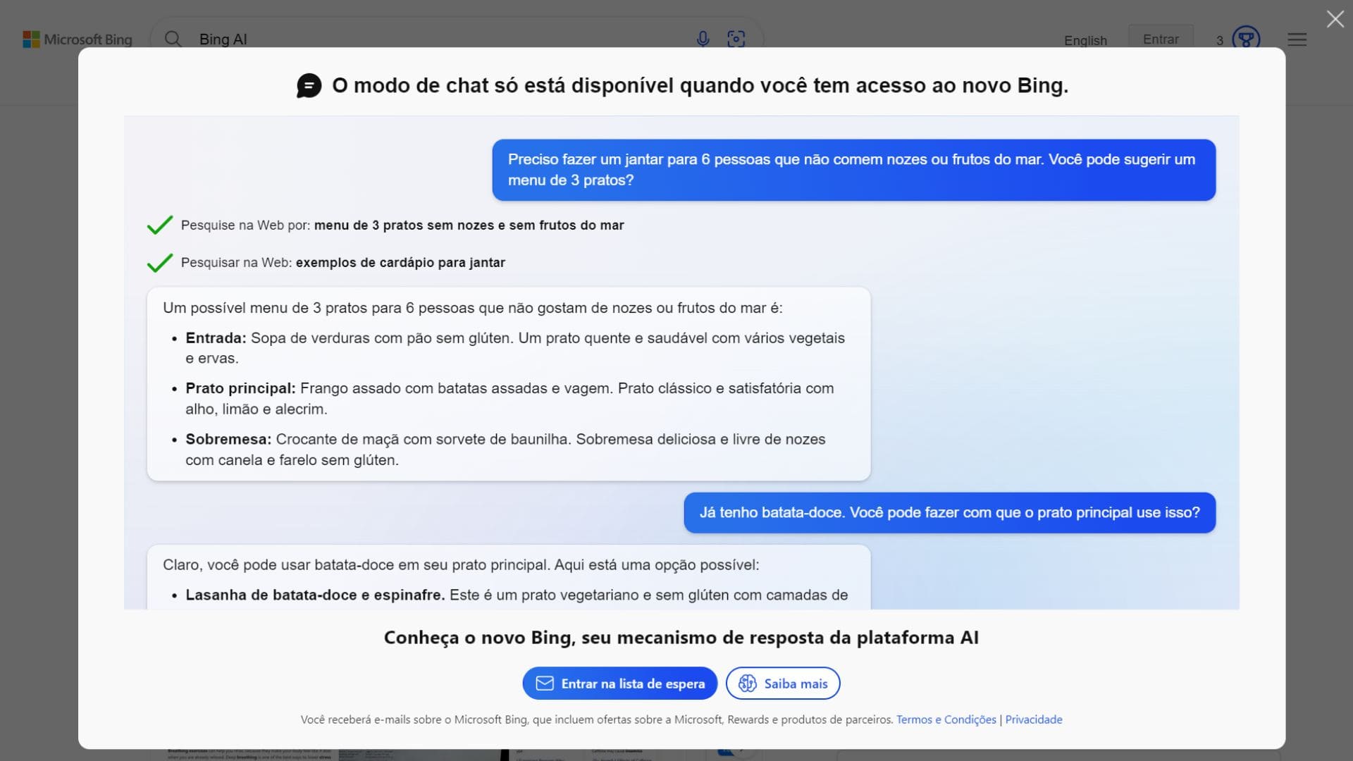 No entanto, a Microsoft já está mostrando um trecho do poder do Bing Chat a todos, com o propósito de aumentar sua base de inscritos na lista de espera e, consequentemente, habituar os usuários ao novo recurso.