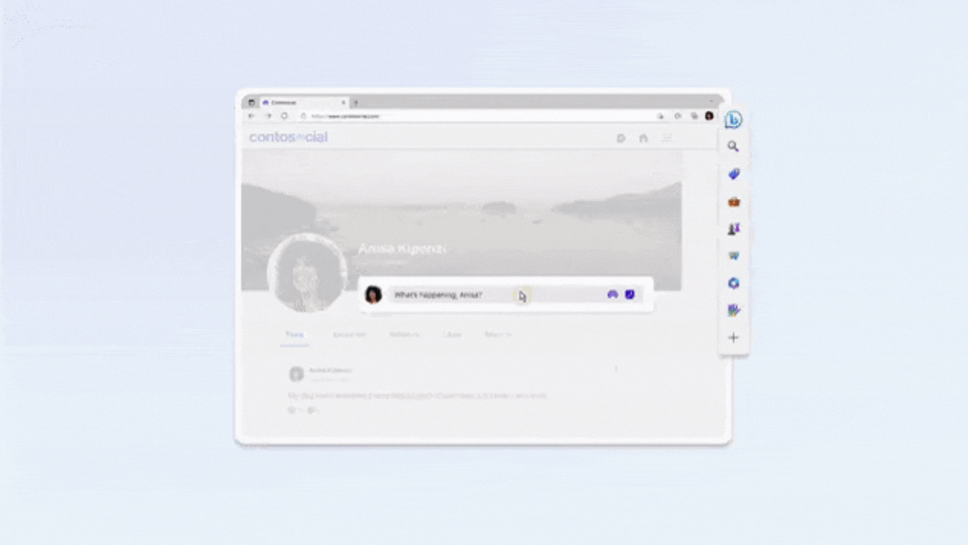 A Microsoft também redesenhou o seu navegador, o Microsoft Edge, para oferecer uma experiência mais agradável de visualização dos chats, com uma aparência simplificada, cantos arredondados, contêineres organizados e elementos visuais semitransparentes.