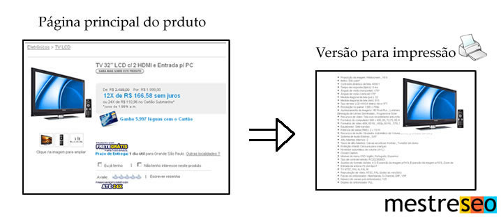 Um site de vendas de produtos tinha a página principal de cada produto e uma página com uma versão para impressão. As duas versão continham exatamente a mesma informação sobre o produto. O que acontecia era que a página de impressão aparecia nos resultados de busca, justamente porque recebia um pequeno pagerank da página principal de seu produto.