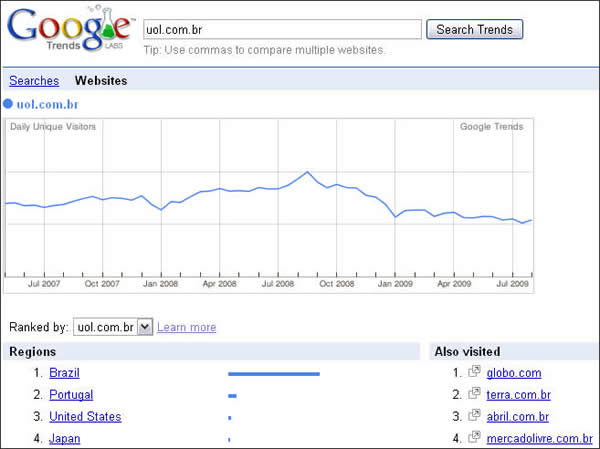 A ferramenta mais básica para esta análise é o Google Trends. Esta ferramenta oferecida pelo Google tem o propósito de estimar as visitas únicas diárias que um site recebe, exibindo um gráfico sobre este dado. Mas nem todo site tem o gráfico exibido. Em testes, observamos que para aparecer o gráfico, um site precisa ter cerca de 5 mil visitas diárias.