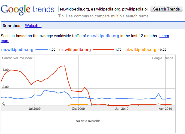 O interessante é que o Google anunciou semana passada que o Google Trends agora pode fazer comparação de dados entre subdomínios, logo, caso o seu concorrente utilize-se de estratégias de subdomínios, basta você analisá-los de forma separada para ter uma noção de qual área está mais relevante.