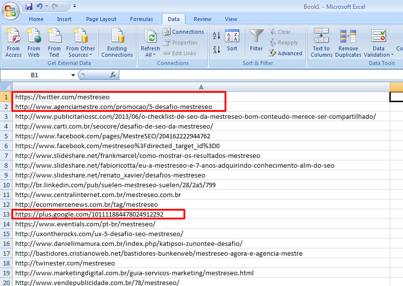 Olá Felipe, obrigado pela ideia e pela explicação. Acredito que poderia acelerar um pouco o segundo passo para quem não quiser esperar 15 minutos. Poderia puxar os seu próprios domínios de referência do MajesticSEO e combinar com os dados obtidos do Free Monitor. Reduzindo as URLs à forma do Root Domain e deixando cada Root Domain apenas uma vez pode combinar essa lista reduzida com a lista dos domínios de referência do MajesticSEO e ver facilmente no Excel quais os domínios/URLs que seu site não foi linkado ainda. Minha proposta valoriza apenas o primeiro link de um certo domínio, mas aceleraria muito o processo. Não considero grave essa omissão já que o primeiro link é tipicamente o mais valioso.