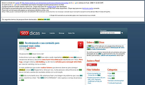 Cache é realmente poderoso para SEO. Quase escondido nos motores de busca, porém indispensável. Tenho agora uma super idéia, claro chapéu-branco.