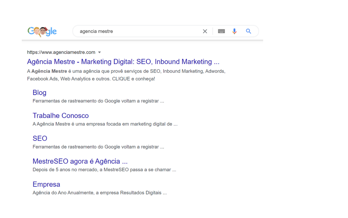 O Google analisa e estrutura os links, criando atalhos para o usuário encontrar a informação mais relevante. É preciso estar atento aos links internos da página quando utilizar esse recurso, pois, o buscador recomenda que: “o texto âncora dos links internos precisa ser conciso e relevante à página de destino.”