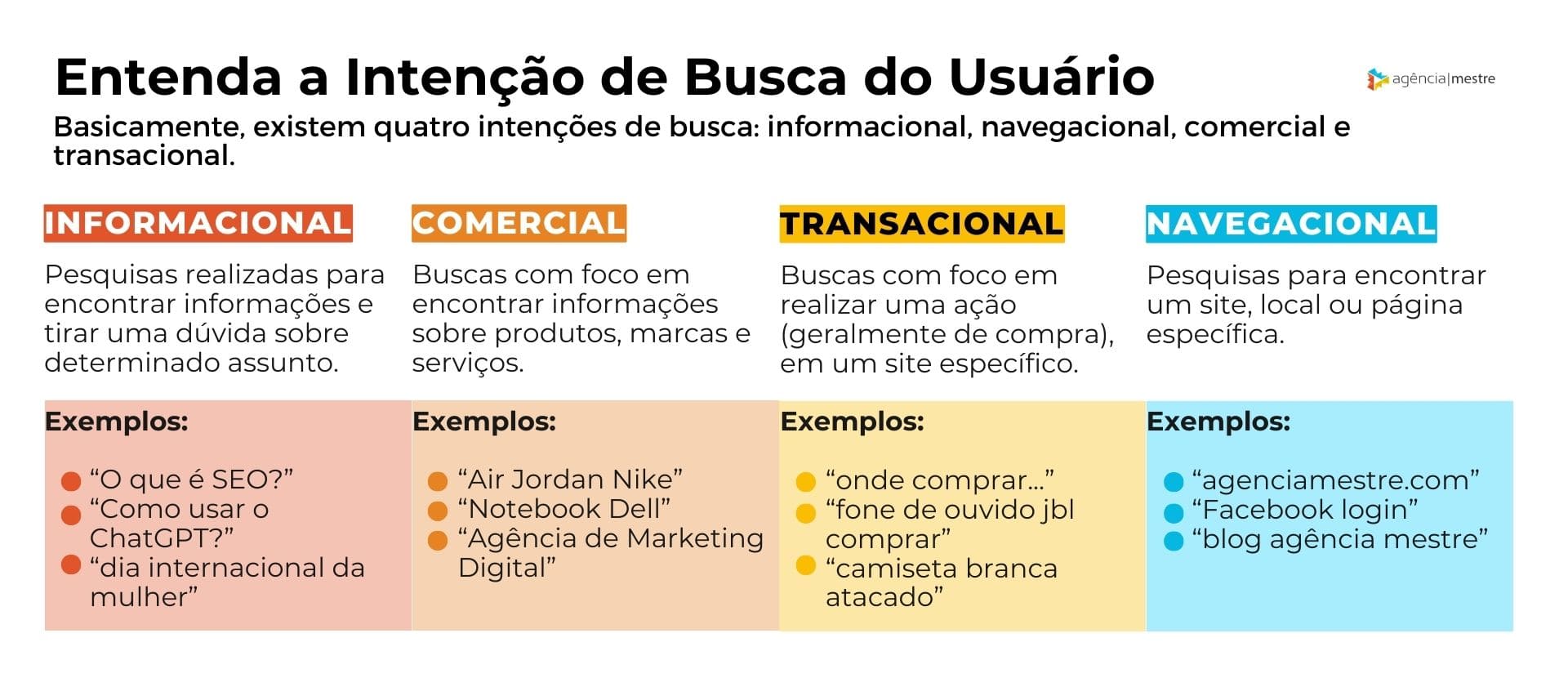 Um dos pontos mais importantes para a criação de conteúdo de valor é entender que os usuários possuem diferentes intenções de busca e seu conteúdo deve atender diretamente à intenção dele.