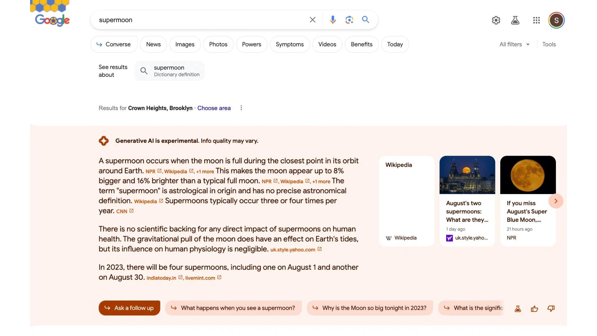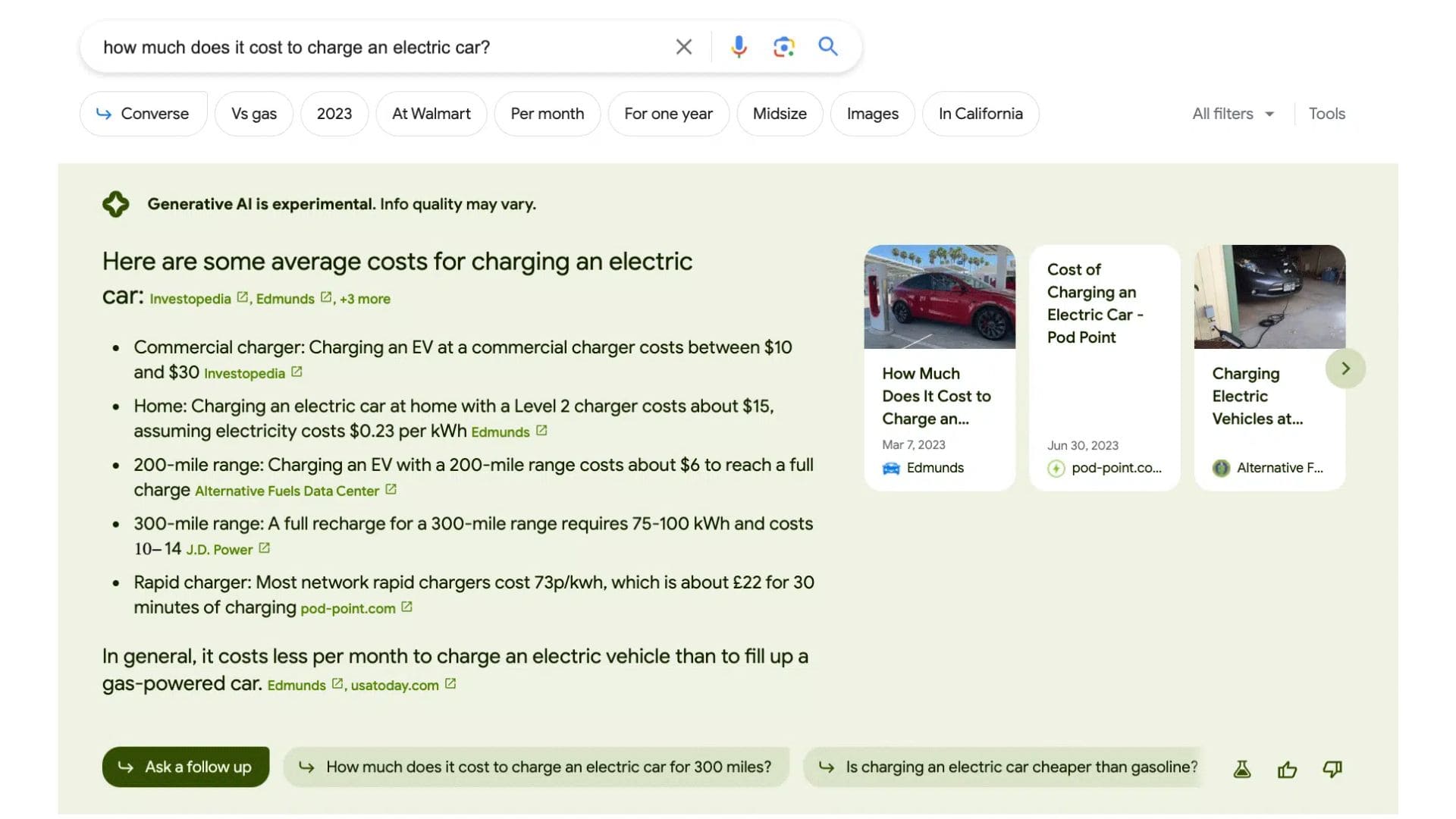 Uma das maiores críticas à Experiência Generativa de Pesquisa é que você não pode clicar no texto da resposta gerada pela IA para a fonte da informação, por isso, ter links nessas respostas generativas torna essa experiência mais útil.