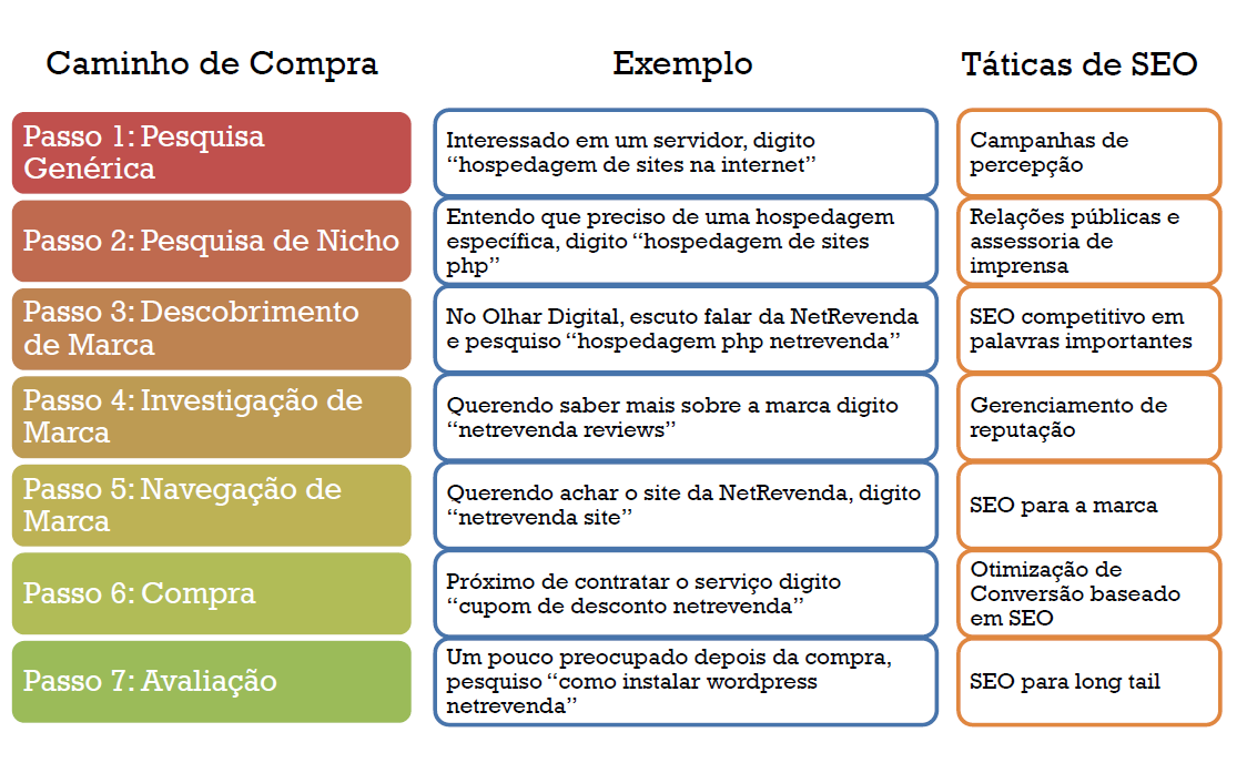 Descobrindo um canal de notícias de sua confiança que fala sobre o assunto, a pessoa se sente mais à vontade para buscar algo como “hospedagem php netrevenda”, onde ele especifica o assunto + uma marca. Neste momento é muito importante que a sua empresa esteja bem posicionado para buscas importantes e com sua marca. É algo que simplesmente com fatores On-Page você resolve.