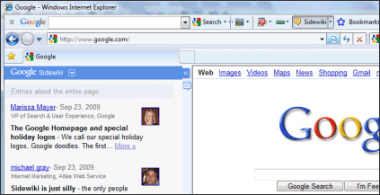 Ainda sobre o Google e o valor de opiniões, recentemente a empresa lançou o SideWiki, uma nova funcionalidade da Google Toolbar. O objetivo da SideWiki é agrupar opiniões de usuários sobre os sites que visitam. Com a Google Toolbar instalada no browser (Firefox ou Internet Explorer), as pessoas (qualquer pessoa) pode fazer comentários sobre os sites que visitam.