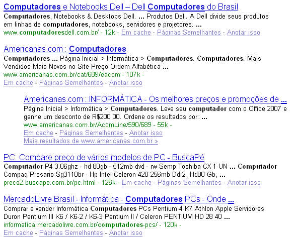 Se você procurar por computadores no Google você vera que várias posições da primeira página não tem essa keyword no nome do domínio.
