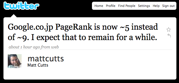 Em paralelo, com um novo artigo em seu blog pessoal, Matt Cutts afirma que a perda de PageRank do Google Japão não é apenas uma punição, mas uma perda de confiança nos links daquele domínio. Em seguida, ele afirma que a equipe do Google Japão deve enviar um pedido de reconsideração explicando o fato para conseguir o seu PageRank de volta.